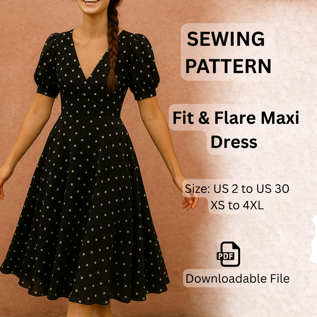 🌺 Fit & Flare Maxi Dress Sewing Pattern (PDF Download) 🌺