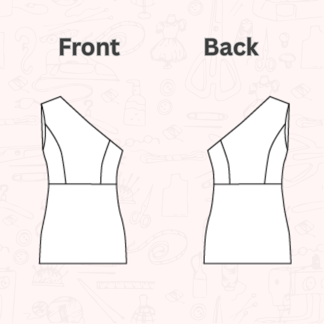 Sew a chic and modern mini dress with this beginner-to-intermediate friendly sewing pattern! Designed with an asymmetrical one-shoulder neckline and a sleek micro-mini length, this dress is perfect for parties, nights out, or making a bold fashion statement.