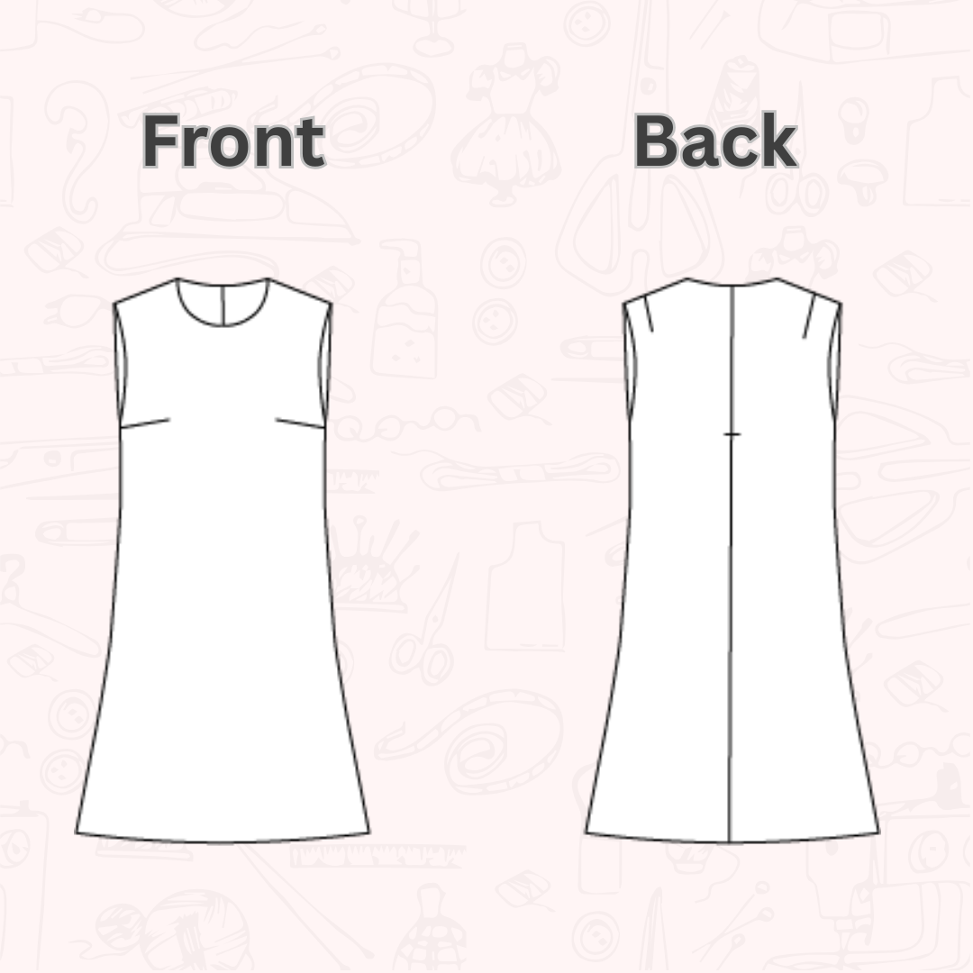 Sleeveless Shift Dress, Sewing Pattern PDF File