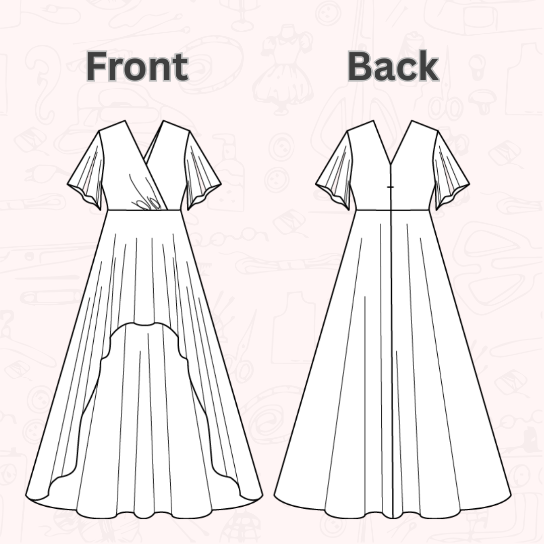 Create a flowy and elegant hi-low dress with this beginner-to-intermediate sewing pattern!
